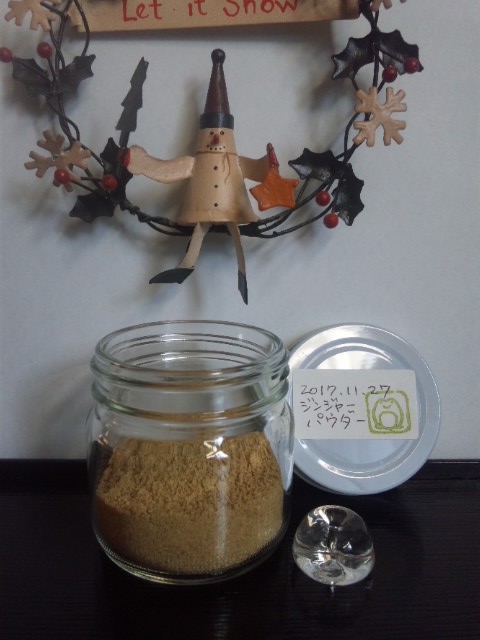 一ヶ月ほど前に薄切りにして干しといた新生姜をパウダーにしてみたよ。